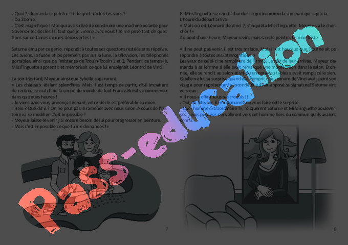 Léonard de Vinci réussit finalement à rejoindre la famille Pass’Temps dans le futur. La découverte de toutes les nouvelles inventions déjà existantes, lui donne l’idée de créer un objet extraordinaire. Imagine-le et dessine-le.