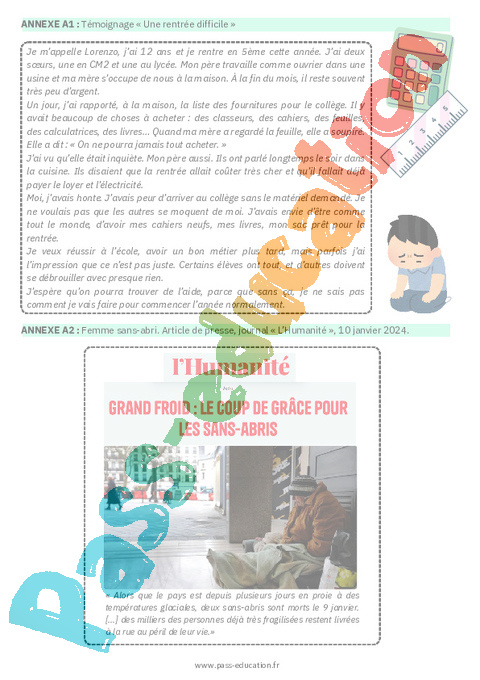 a. Projection d’un témoignage d’une famille qui ne peut pas acheter de fournitures scolaires (Annexe A1).