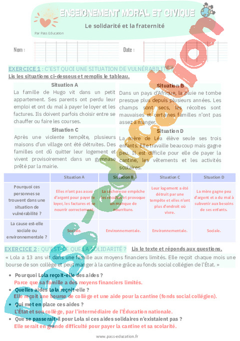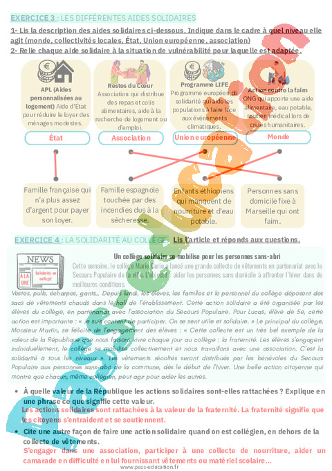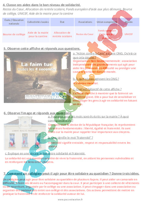 2. Correction Fiche élève- Solidarité et fraternité : Secondaire 1 pdf
