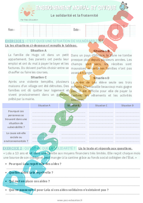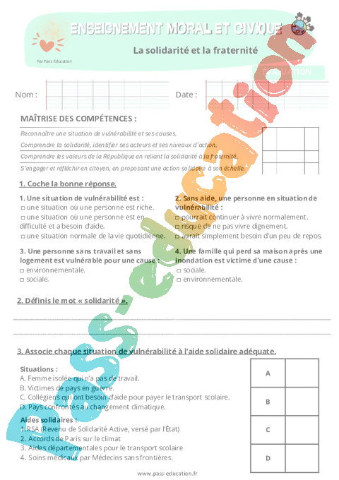 1. Fiche de préparation La solidarité et la fraternité : Secondaire 1 pdf