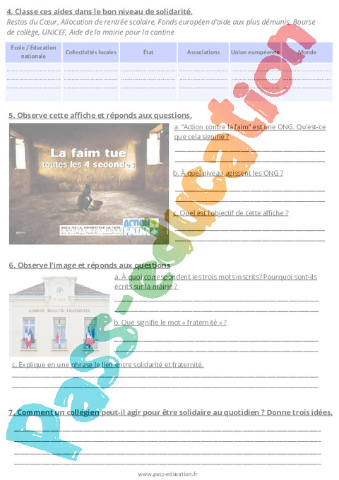2. Fiche élève – Solidarité et fraternité : Secondaire 1 pdf