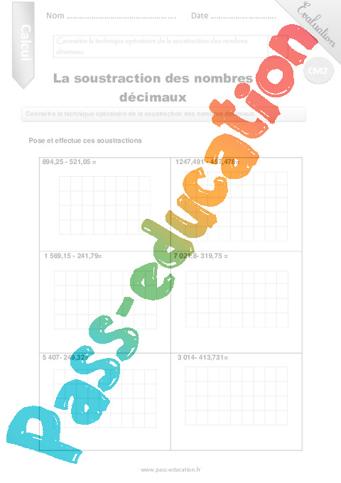Connaitre la technique opératoire de la soustraction des nombres décimaux.