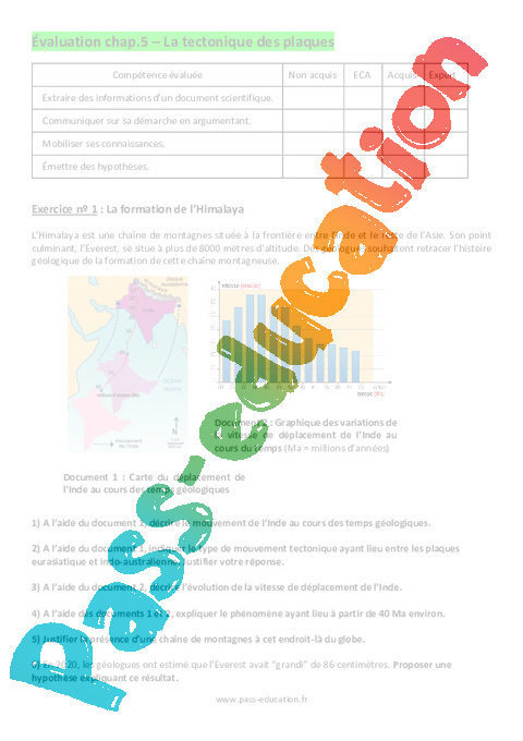 Évaluation chap.5 La tectonique des plaques Correction pdf