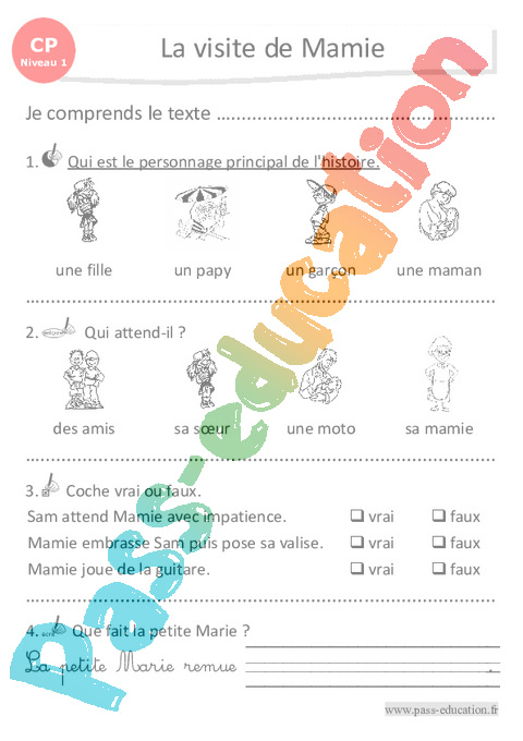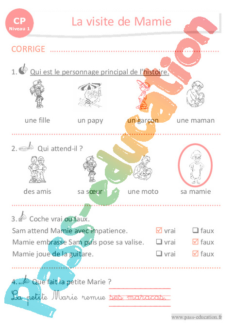 Correction Questionnaire La visite de Mamie : Primaire 1 pdf