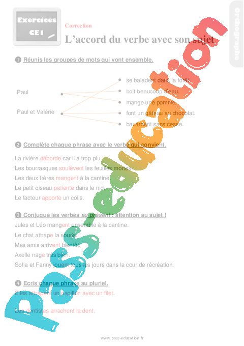 Exercices : Primaire 2 sur l’accord du verbe avec le sujet – Correction pdf