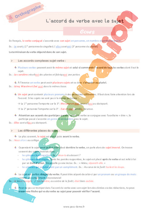 Cours sur l’accord du verbe avec le sujet pour la Primaire 6 .