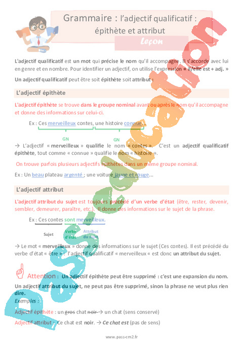 Leçon : Primaire 5 l’adjectif qualificatif épithète et attribut pdf