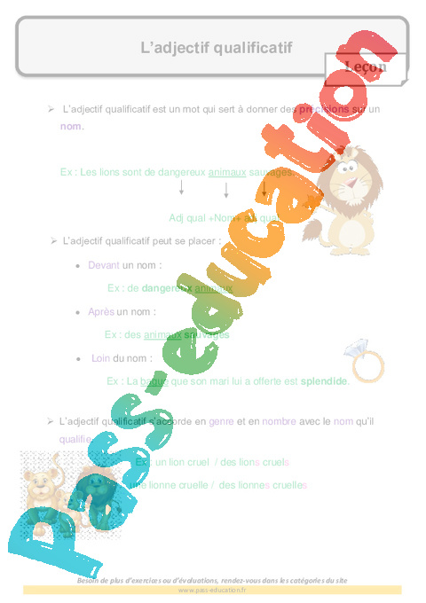 L’adjectif qualificatif : Primaire 4 -Accompagnement scolaire pdf