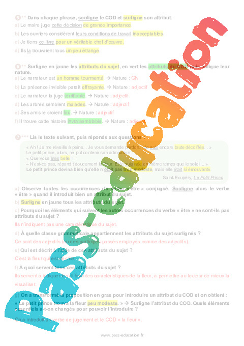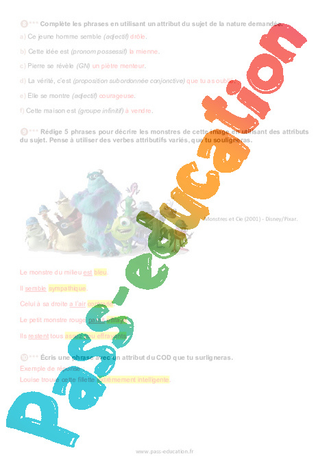 Exercices : Secondaire 2 L’attribut pdf