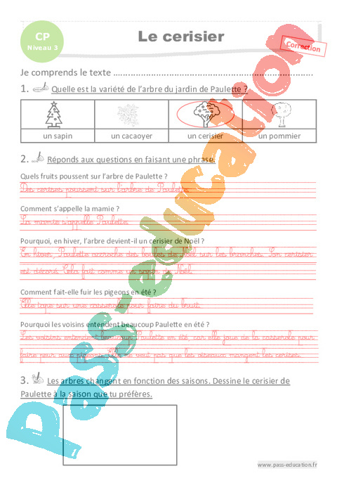 Correction Questionnaire Le cerisier : Primaire 1 – Luminéo – Niveau 3 pdf