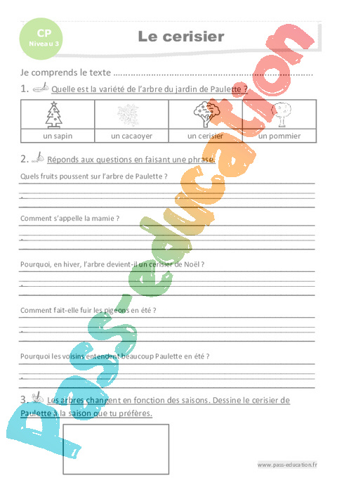 Questionnaire Le cerisier : Primaire 1 – Luminéo – Niveau 3 pdf