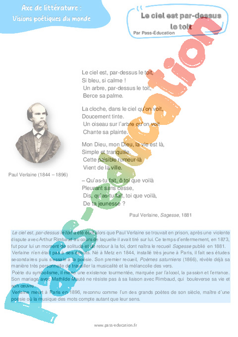 Littérature Le ciel est par-dessus le toit (Paul Verlaine) : Secondaire 3 rtf