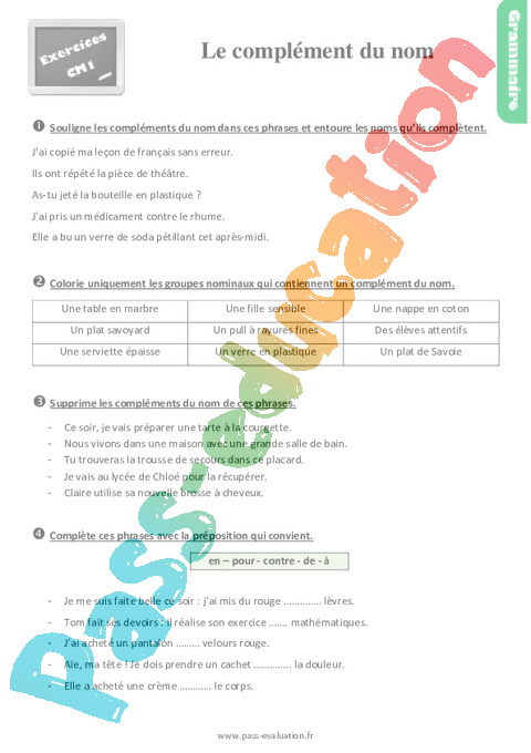 Exercices Correction Le complément du nom en Primaire 4 pdf