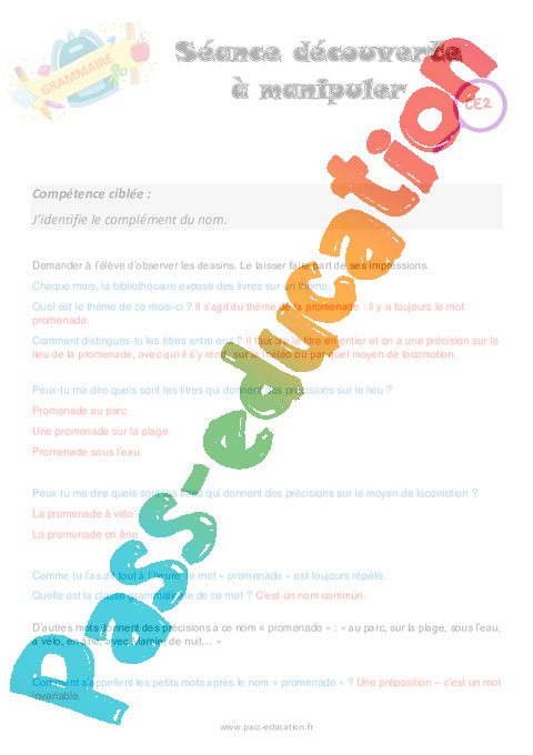 le complément du nom-grammaire : Primaire 3 -séance à manipuler- accompagnement +correc pdf