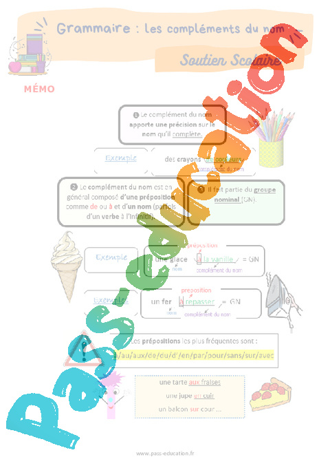 Mémo Le complément du nom : Primaire 3 – Soutien scolaire pdf