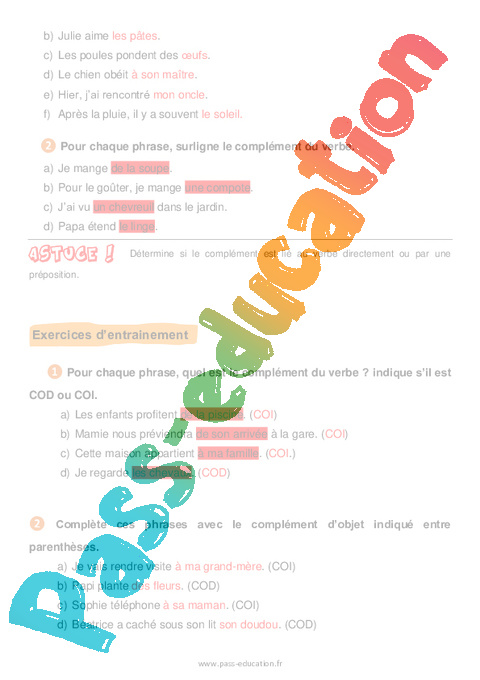 Le complément du verbe : Primaire 3 – Soutien scolaire pdf