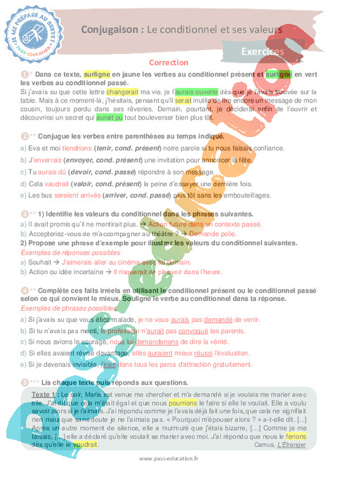 Correction Exercices Le conditionnel et ses valeurs : Secondaire 3 – Je me prépare au Brevet pdf
