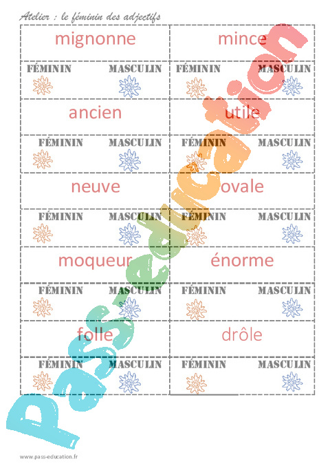 Etiquettes – matériel enseignant Le féminin des adjectifs : Primaire 2 pdf