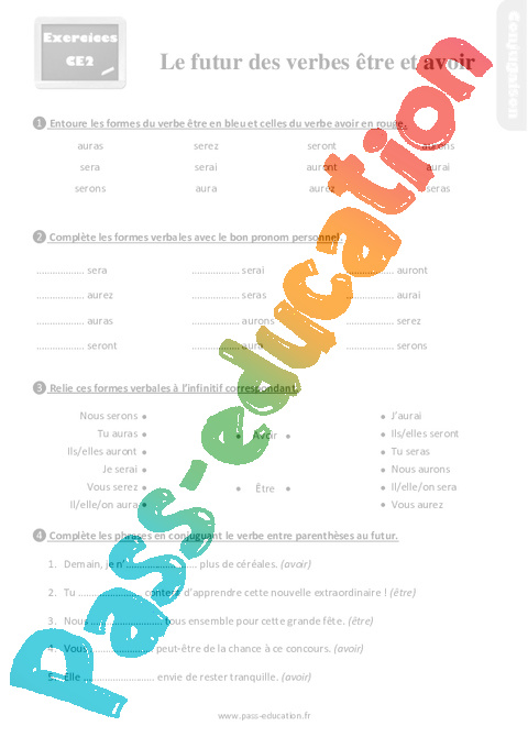 Exercices, révisions sur le futur des verbes être et avoir en Primaire 3 pdf