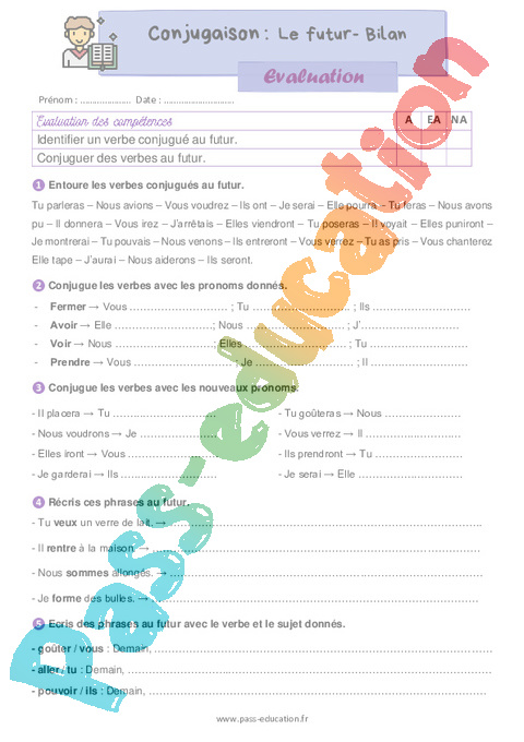 Evaluation Le futur : Primaire 2 – 1er 2e groupe pdf