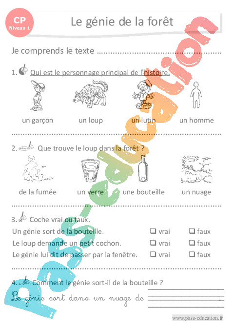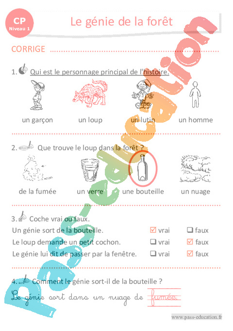 Questionnaire Le génie de la forêt : Primaire 1 – Luminéo – Niveau 1 + Correction pdf
