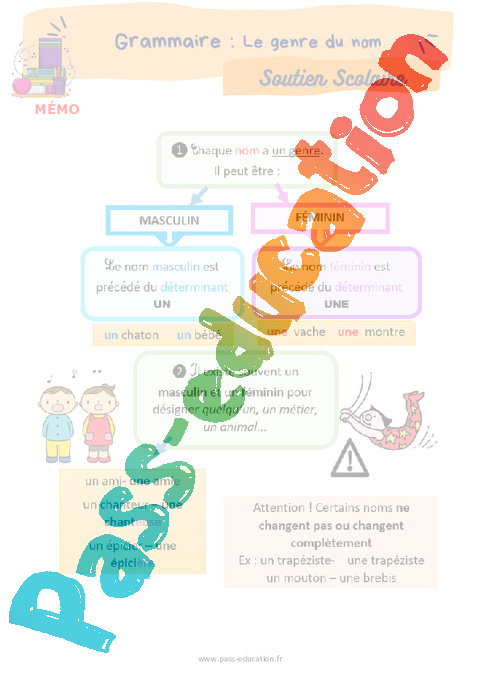 Soutien et rattrapage scolaire en grammaire : le genre du nom