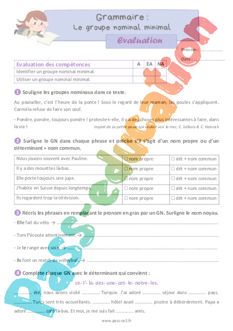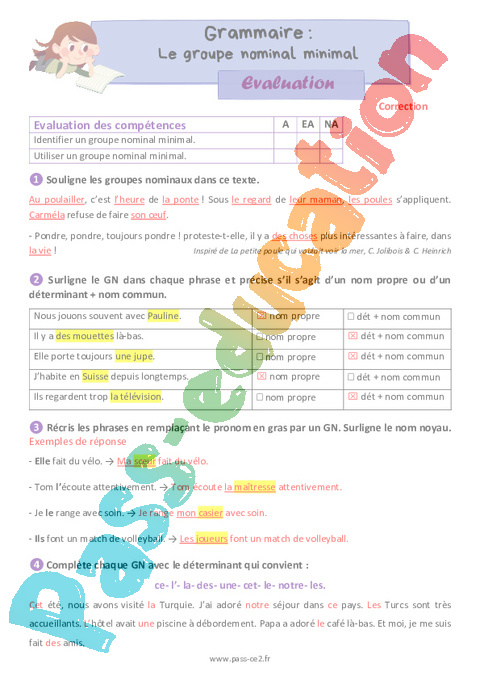 Evaluation Correction : Primaire 3 Le groupe nominal minimal pdf
