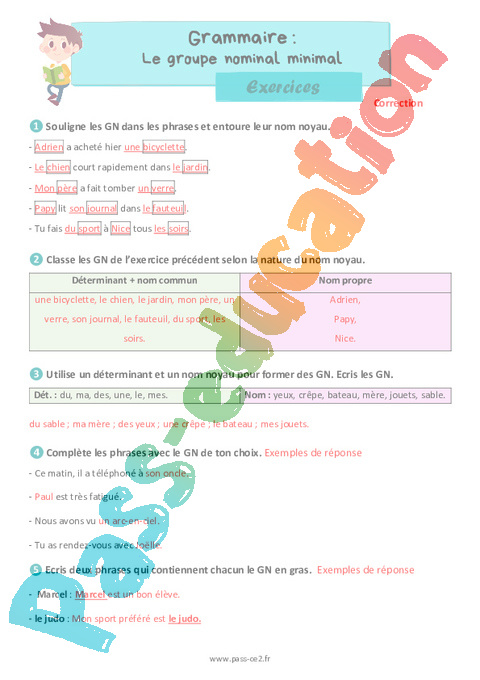 Correction Exercices Le groupe nominal (GN minimal) : Primaire 3 pdf