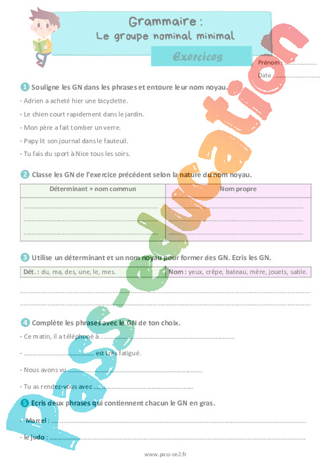 Exercices Le groupe nominal (GN minimal) : Primaire 3 pdf