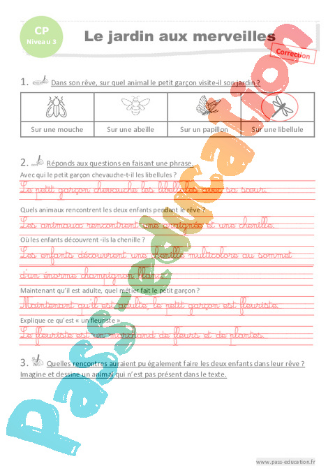 Correction Questionnaire Lecture Le jardin aux merveilles : Primaire 1 – Luminéo pdf