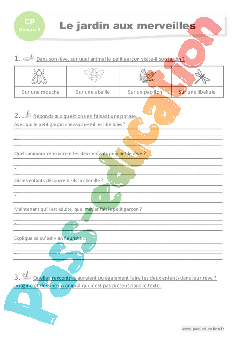 Questionnaire Lecture Le jardin aux merveilles : Primaire 1 – Luminéo pdf