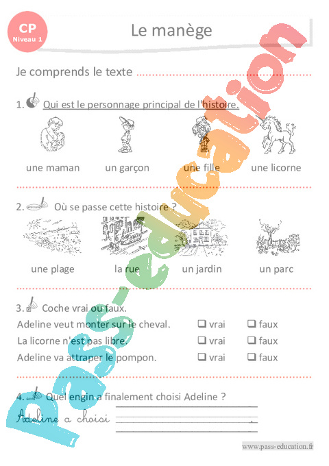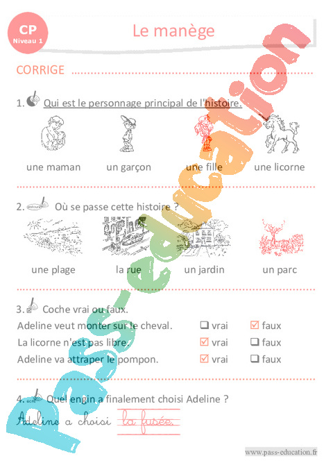Correction Questionnaire Le manège : Primaire 1 – Luminéo – Niveau 1 pdf