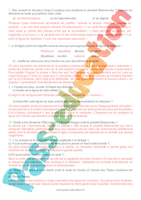 Correction Questionnaire Le meilleur des mondes, Aldous Huxley, (1932) : Secondaire 3 pdf