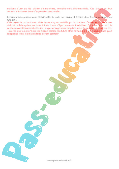 b) Quels liens peux-tu établir entre le texte de Huxley et l’extrait des Temps modernes de Chaplin ?