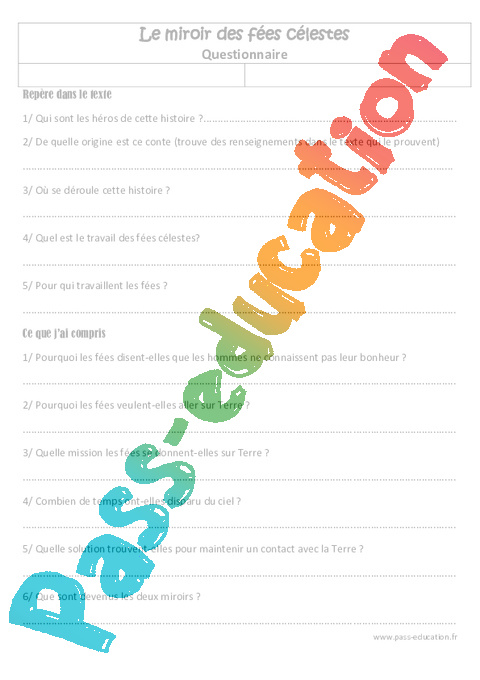 Sujet : Le miroir des fées célestes : Primaire 4, 5 – Lecture – Contes du monde