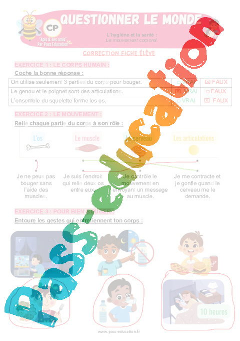 4.1 Correction Fiche Elève : Primaire 1 Le mouvement corporel pdf
