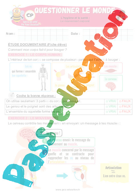 Exercices – Le mouvement corporel en Primaire 1 – Apis & ses amis : Questionner le monde.