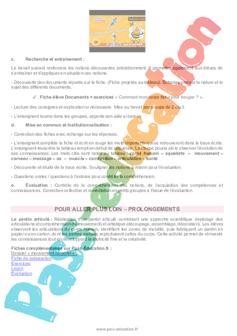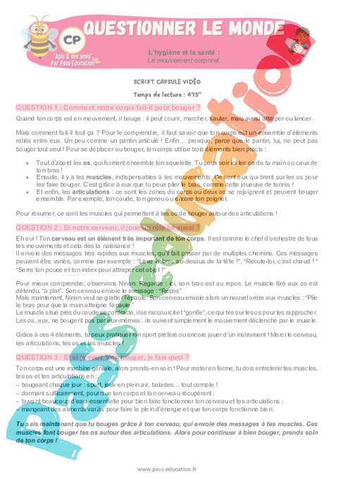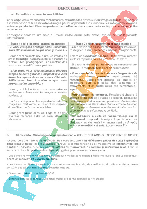 2 Script : Primaire 1 Le mouvement corporel pdf