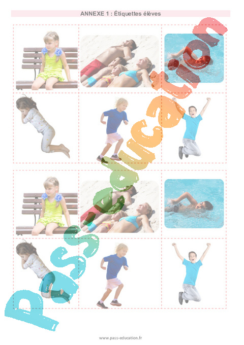 Cette étape vise à mobiliser les connaissances préalables des élèves sur leur image corporelle. Elle s’appuie sur l’observation et la classification d’images par les apprenants afin d’introduire les notions-clés suivantes : notre corps adopte différentes postures pour effectuer des mouvements variés, que ce soit en action ou au repos.