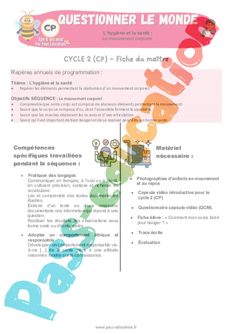 1 Fiche de préparation : Primaire 1 Le mouvement corporel pdf
