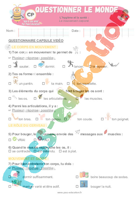 3 QCM caspule vidéo : Primaire 1 Le mouvement corporel rtf