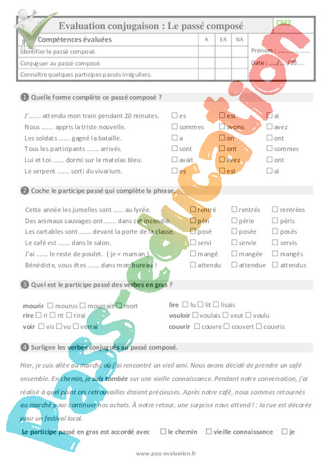 Le passé composé en Primaire 5 – Evaluation QCM rtf
