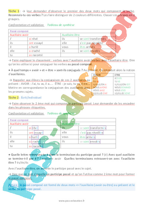Leçon : Primaire 2 Le passé composé des verbes en -er pdf