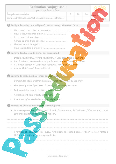 Evaluation Correction : Primaire 5 le passé, présent futur pdf