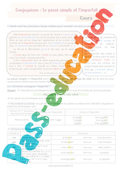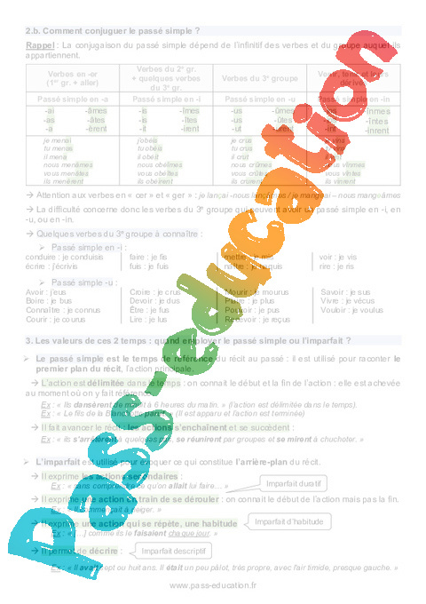 Cours niveau : Secondaire 2 sur le passé simple et l’imparfait.