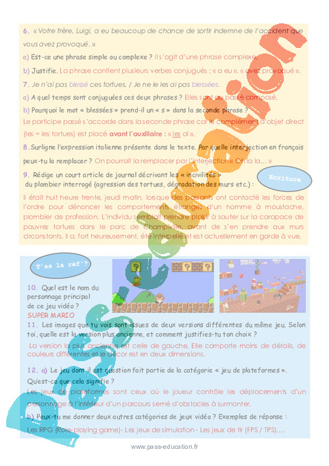 Correction Le plombier italien : Primaire 6 Secondaire 1 – Littérature – T’as la réf rtf