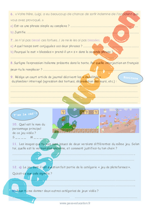 T’as la réf ? en : Primaire 6 Secondaire 1 et : Primaire 6 Secondaire 1 sur : Le plombier italien en littérature.