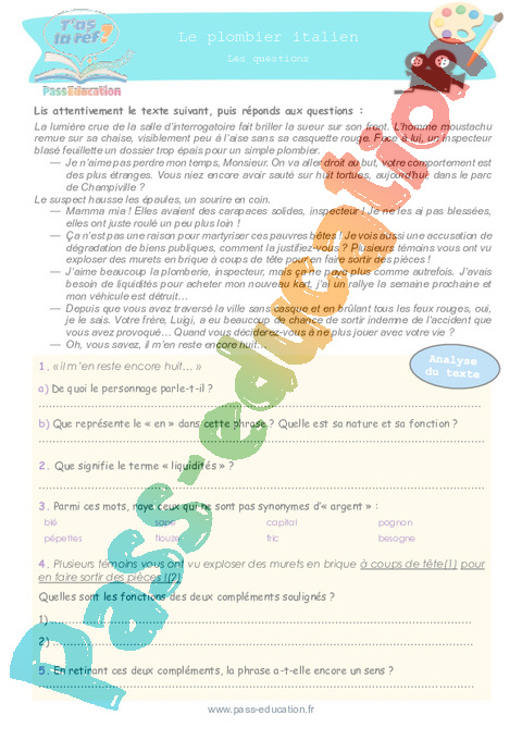 Le plombier italien : Primaire 6 Secondaire 1 – Littérature – T’as la réf rtf