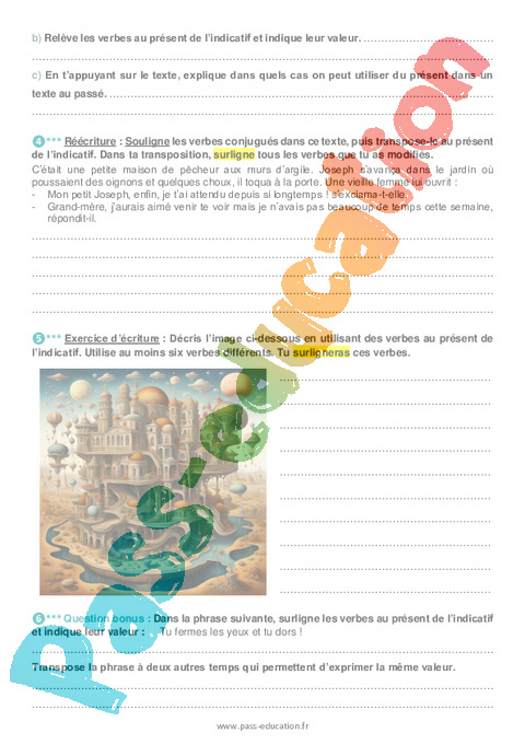 Exercices Le présent de l’indicatif et ses valeurs : Secondaire 3 – Je me prépare au Brevet pdf