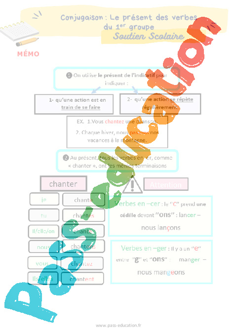 Mémo Le présent des verbes du 1er groupe : Primaire 2 – Soutien scolaire rtf